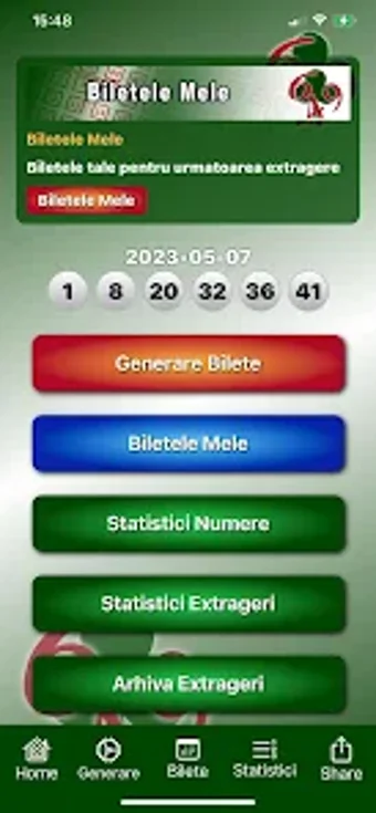 แอปพลิเคชัน Bilete Loto 6 din 49 เป็นแอปพลิเคชันสร้างตั๋วสำหรับเกมยอดนิยม Loto 6 din 49 ผู้ใช้สามารถสร้างตั๋วเวอร์เรียนต์ ดูสถิติ และกำหนดราคาของตั๋วด้วยหรือโดยไม่มีแผนลดราคา แอปพลิเคชันช่วยให้การบันทึกตั๋วสำหรับการจับสลากที่จะมาถึงและให้การเข้าถึงผลลัพธ์ทันทีหลังจากการจับสลาก สถิติอย่างละเอียดสำหรับแต่ละตัวเลข (ความถี่ การทำซ้ำ ลำดับ) พร้อมกับข้อมูลข้อความสำหรับการจับสลากแต่ละครั้ง (ลำดับตัวเลข ช่วงเวลาที่ขาดหาย ตัวเลขที่ทำซ้ำ)